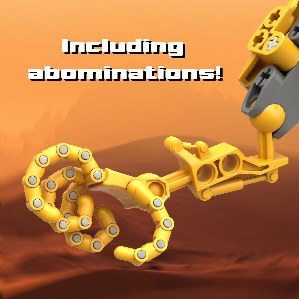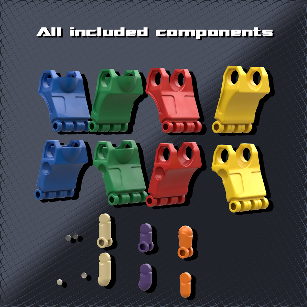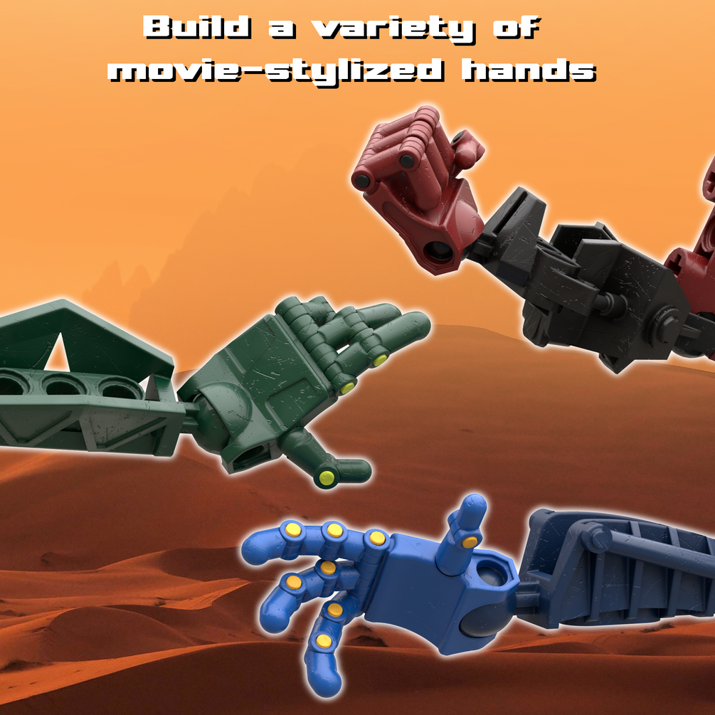 I took some liberties to design these to have more of the shape language of the physical part instead of the simplified shapes of the film model to have a nice balance between the two so they melded with builds much more nicely. Included are two hand variants for the left and right side letting you pick if you want the wrist cup or the open socket, long finger variants for the more set-accurate look, and short finger variants in case you want the Hero Factory-like three-segmented fingers.
